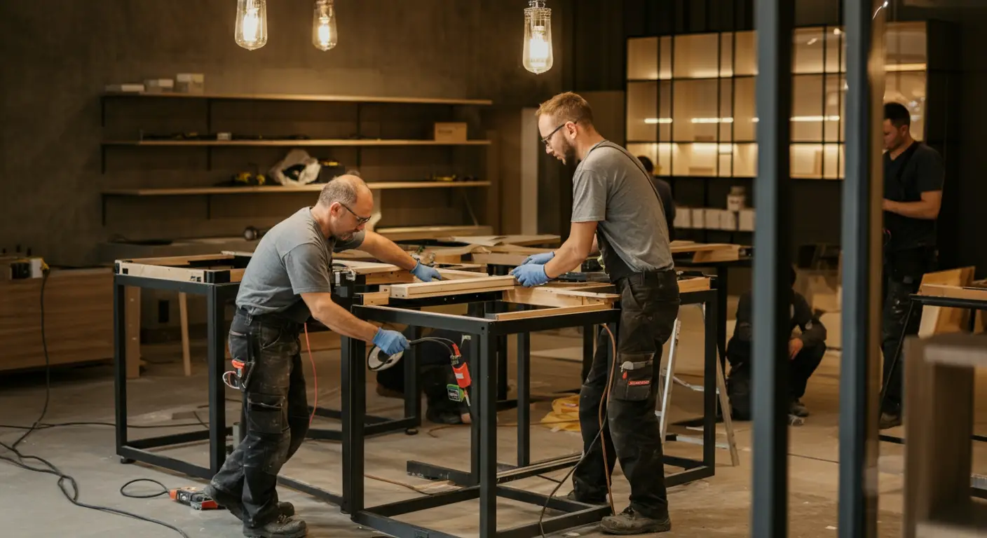 Full range of services including store setup, furniture, electrical, and ceilings.